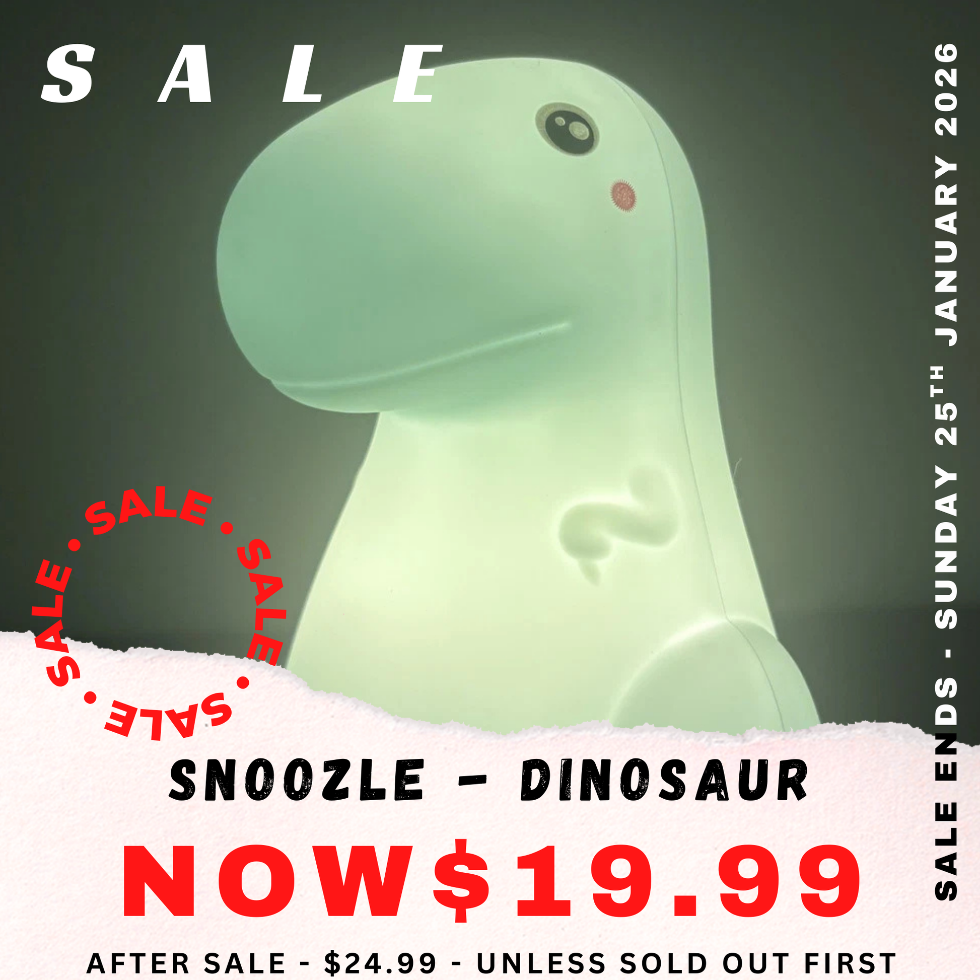 Adorable Dinosaur Design: Features a rounded glowing body, cute dino features, and a sweet friendly expression that brightens any space.
